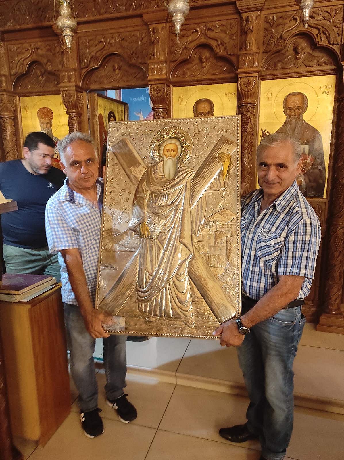 Στις πιο κάτω φωτογραφίες φαίνεται ο Πρόεδρος του Κοινοτικού Συμβουλίου Πανάγρων κ. Μιχαλάκης Αλεξάνδρου και ο Πρόεδρος του Σωματείου "Πάναγρα Επιστροφή"κ. Αντώνης Αντωνίου που βαστάζουν την εικόνα του προστάτη Αγίου του χωριού μας, Αποστόλου Ανδρέα, κατά την λιτανεία το Σάββατο 26 Ιουλίου 2025, μετά τον Πανηγυρικό Εσπερινό.