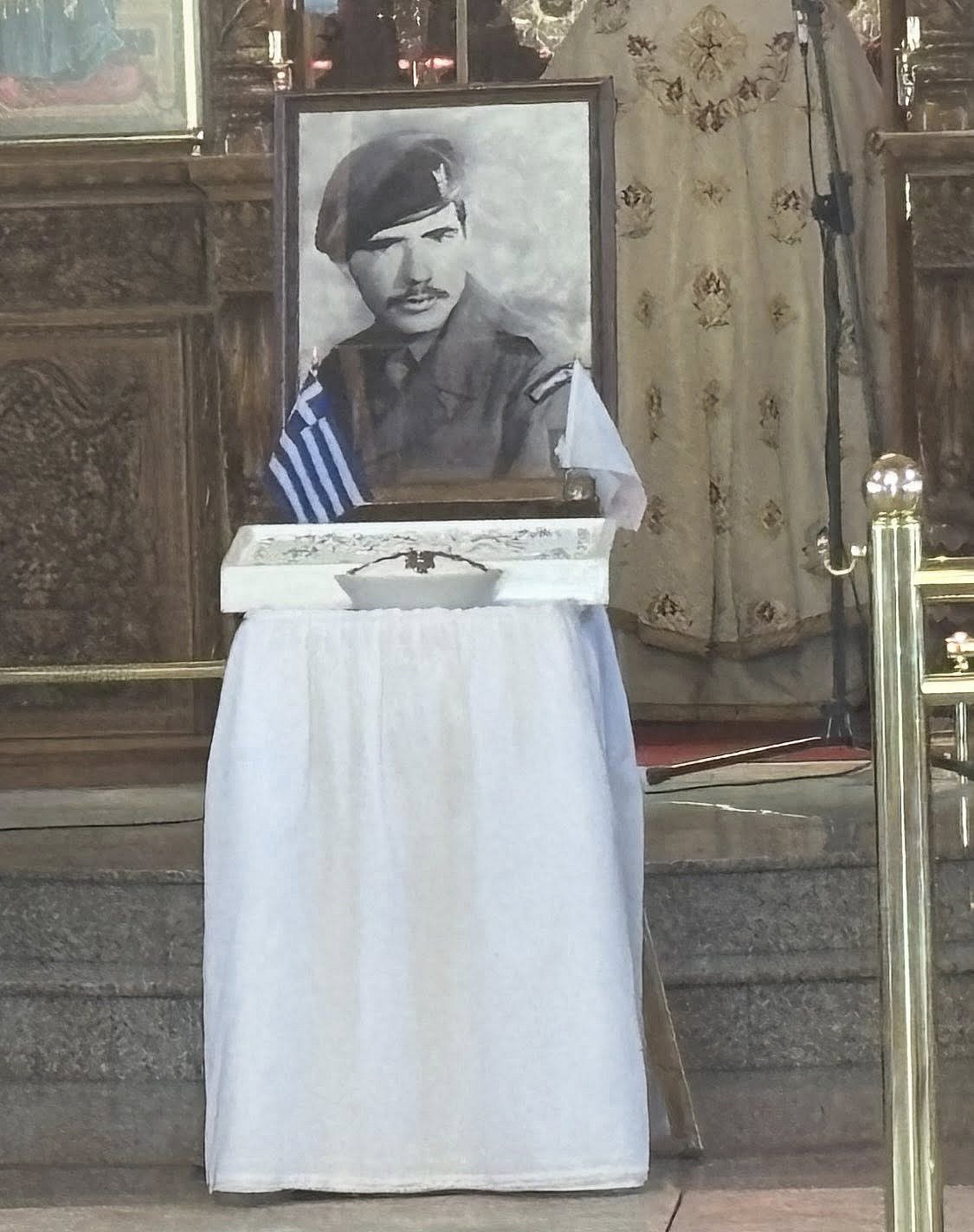 Μετά το πέρας της Θείας Λειτουργίας και του μνημοσύνου,ακολούθησε τρισάγιο και κατάθεση στεφάνων στη προτομή του ήρωα,που βρίσκεται στον περίβολο της εκκλησίας.